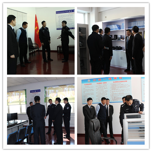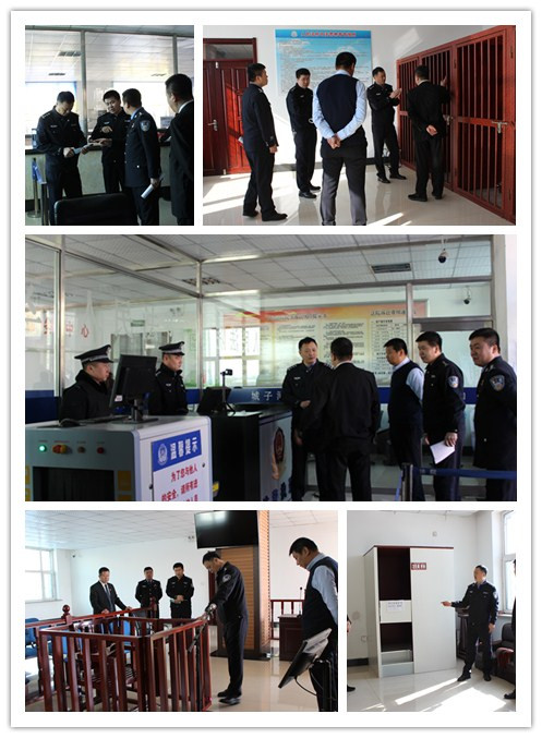 检查组对安检执勤、羁押室、警用装备室、监控室等硬件设施进行检查