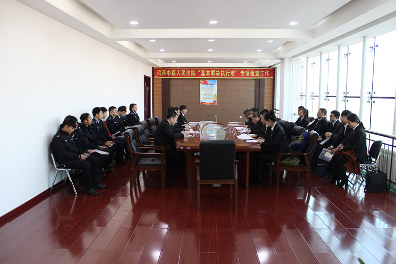 3月16日下午,由鸡西市中级人民法院派出的由刘成林、刘成、李冠春、朱博带队的 “基本解决执行难”专项检查组到城子河区法院开展第二轮“基本解决执行难”检查执行工作。