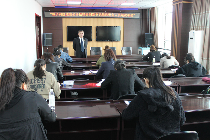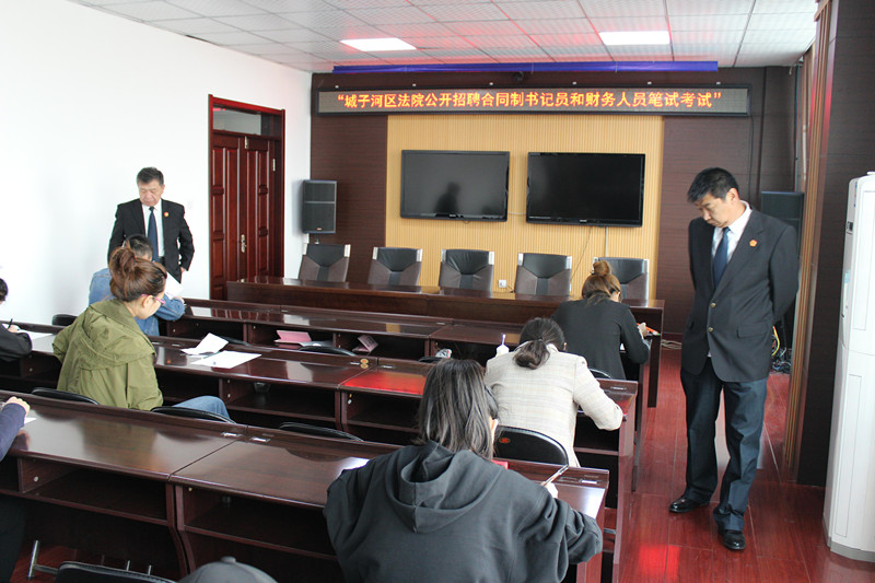 5月8日,通过资格审查符合报考条件的18名考生参加了城子河法院聘用制书记员和财务人员统一招聘考试。为严肃考风考纪,保证考试的公平公正由常务副院长辛宝峰、办公室主任付剑锋、政工科工作人员进行监考,副院长孙永杰对书记员听打测试全程监督。