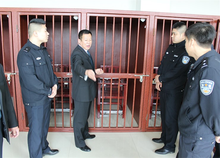 副院长孙永杰在羁押室为参观民警做介绍