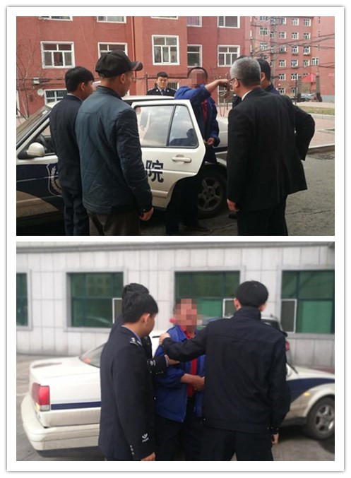 执行工作人员将被执行人带回法院