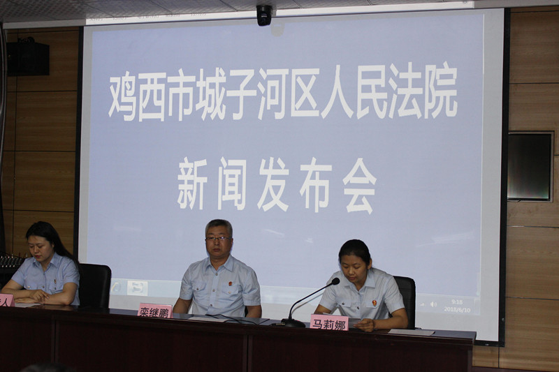 6月10日上午,城子河区人民法院召开执行工作新闻发布会,向社会通报我院2018年上半年执行工作情况及“雷霆行动”打击周工作成果。政工科负责人管莉主持本次发布会,来自区人大、区政协、区政法委、区宣传部、区检察院、区公安局、区妇联、区街道办事处的领导、人大代表、政协委员及鸡西日报、鸡西电视台等新闻媒体记者应邀参加了新闻发布会。