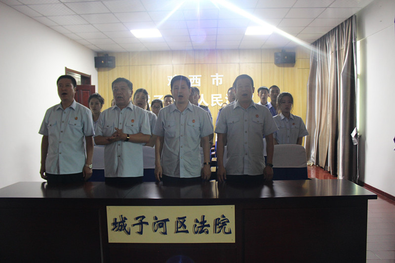 歌会最后城子河法院党组班子和干警们合唱,《没有共产党就没有新中国》,将本次唱红歌活动推向高潮。大家精神饱满,歌声嘹亮,歌唱祖国河山,歌唱中国共产党,用歌声表达对祖国的热爱;以激情唱出对党的忠诚;融热血发出对人民的誓言:用公平正义捍卫司法尊严。