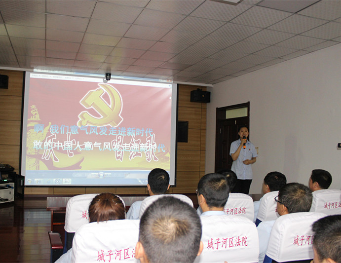 《中国人》、《走进新时代》、《红旗飘飘》、《我爱你中国》一首首激情澎湃、铿锵有力的红歌旋律在法院上空飞扬,无不催人奋进。干警们在红歌精神的感召下,把对祖国母亲的热爱,对远大理想的追求,都融入到美妙的歌声中,凝聚了人心和士气,唱出了激情和干劲。熟悉而令人奋进的旋律抒发了法院干警忠于党、忠于国家、忠于人民、忠于法律事业的高尚品质和崇高情怀,激励着全院干警奋发向上,为法院审判事业而不懈努力奋斗。