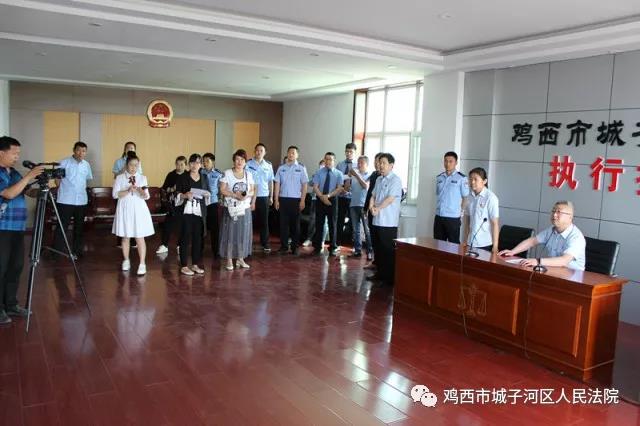 雷霆行动集中打击周结束后,为保证后续执行工作宣传取得更好的效果,城子河区人民法院于2018年6月13日上午开展执行活动专项宣传活动,暨第十七次公众开放日。活动邀请了区政法委、区宣传部、区检察院、区公安局、区妇联、街道办事处及社区的领导以及人大代表、政协委员。
