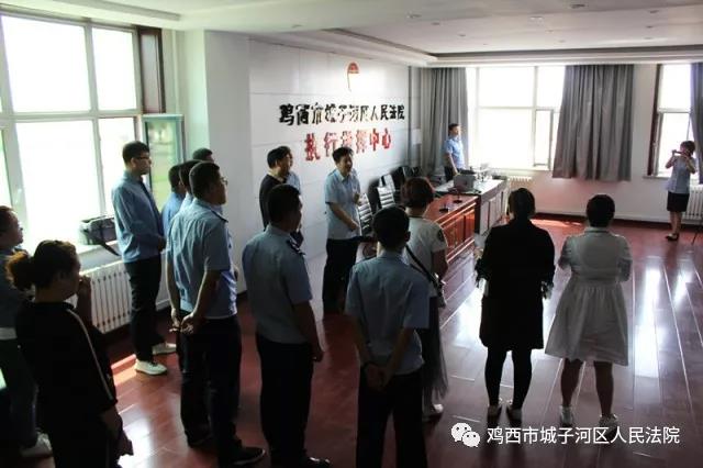 来宾们参观了我院的基础设施,党组书记、院长刘文辉陪同来宾们重点参观了执行指挥中心并对其功能进行了细致的讲解。为给参观来宾带来不一样的体验,执行局负责人栾继鹏通过执行指挥中心系统,亲自指挥对被执行人进行抓捕,执行干警通过单兵将抓捕画面传送回来,整个抓捕过程非常顺利。来宾们直观感受了现场执行的实时画面,纷纷表示:“现在执法技术太先进了”,“执行干警真是辛苦”,“执法规范化让他们肃然起敬”。