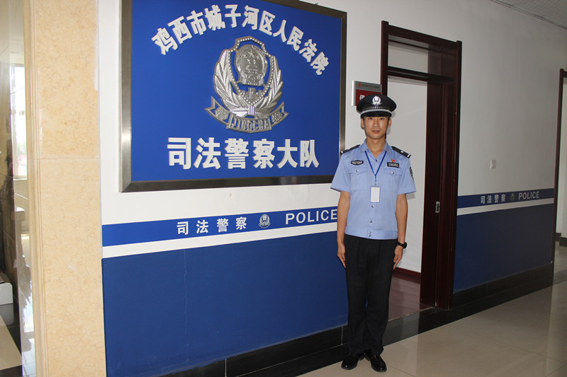 他叫姜明洋,城子河法院法警大队法警,2010年入伍,服役于武警内蒙古兴安盟支队。在部队期间曾获优秀士兵,因出色完成任务多次被支队通报嘉奖。90后的他,有着与同龄人不一样的追求,凭着对这身军装的热爱,刚刚退伍的他选择了法院的法警工作。他来到我院工作不久,但无论是在法警大队执行警务,还是在体能训练中,他都表现优秀,他是城法警队的新生代实力派。