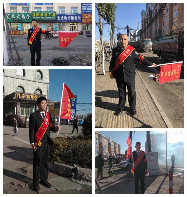 早上7:50,在中心大街与政通路交叉口、中心大街与佳和路交叉口,9名干警就已经全部就位,开始文明交通劝导活动。他们佩戴者志愿者袖标和绶带,手拿文明劝导旗,对问路的行人或老弱病残者提供帮助,劝导、纠正行人乱穿马路、闯红灯等不文明行为。