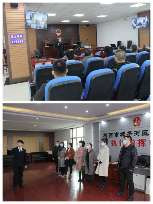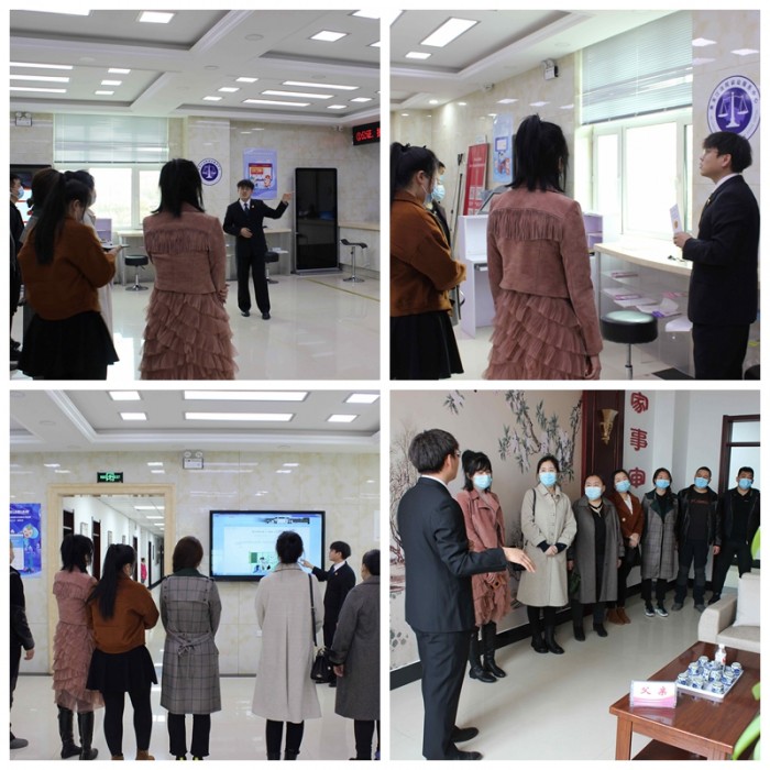 在讲解员的带领下,参观人员依次参观了城子河法院的安检大厅、诉讼服务大厅、家事审判调解室、文化长廊、科技法庭、执行指挥中心等场所。深入了解立案、审判、执行等法院工作流程,零距离接触法院的文化建设、干警的工作生活环境,尽快熟悉未来工作岗位。