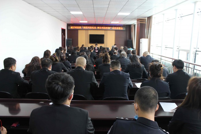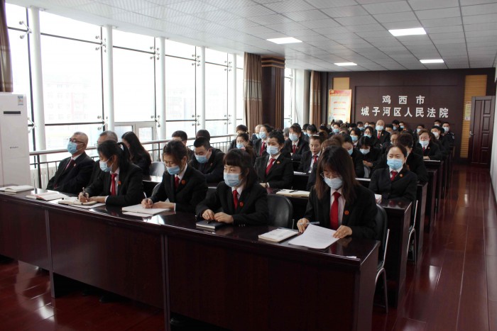 3月30日下午,城子河法院召开“规范司法礼仪 树立司法形象”动员部署会,党组书记、院长闫广丹出席会议并讲话,党组成员、副院长关金海主持会议并传达了市中院党组书记、院长李岫岩在全市法院工作会议上的讲话精神,政治部负责人李佳洪领学了《鸡西市城子河区人民法院工作人员行为规范》,全院干警参加了会议。