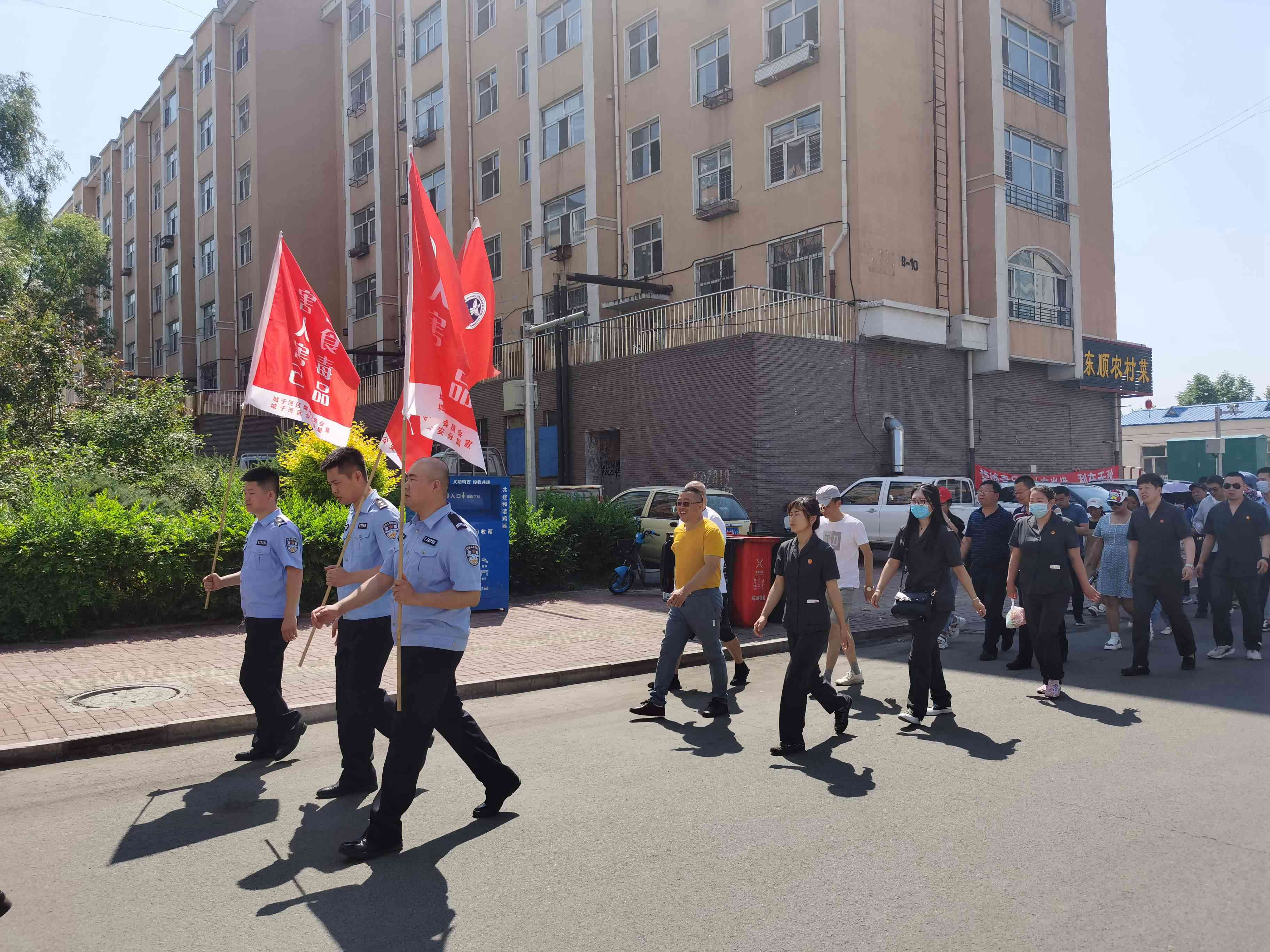 活动中,方阵队伍整装待发。仪式启动后,各队伍以饱满的精神,迈着矫健的步伐,高举“吸食毒品 害人害己”宣传旗帜,以兴城广场为起点,沿民业街向上,围绕兴城小区一路阔步健走,广泛吸引了周边过往群众、小区住户的注意,充分在辖区范围内营造浓厚的禁毒宣传氛围,表达出全民参与禁毒、铲除毒品的强大声势。