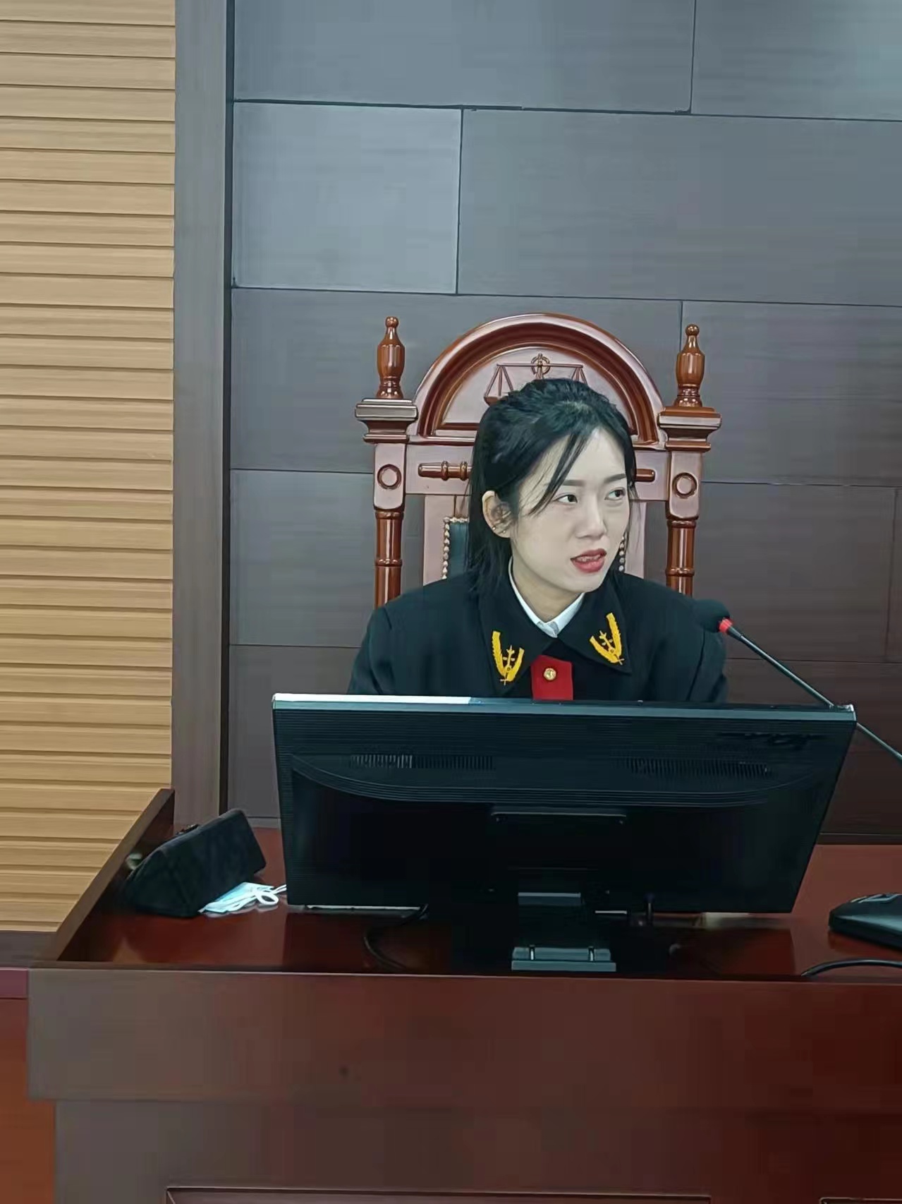 2月15日,赵琳法官在城子河法院开庭审理了一起袭警罪案件。庭前,她反复阅卷,认真查看案发监控视频;为保障被告人诉讼权利,在法定时间内为其指定辩护人。庭审中,她不卑不亢,主持庭审掷地有声;面对被告人的不配合,更是不慌不忙,优雅从容。办理案件,她关注每一个细节,把工作做到极致;对于当事人,她客观中立,将责任感贯穿始终;对待庭审,她锋芒毕露,在法徽下尽显司法的庄严肃穆。干练的庭审活动中,隐藏的是她在重感冒下仍坚持工作,坚守岗位的坚韧与果敢。