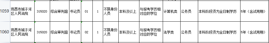 招考部门名称:鸡西市城子河区人民法院