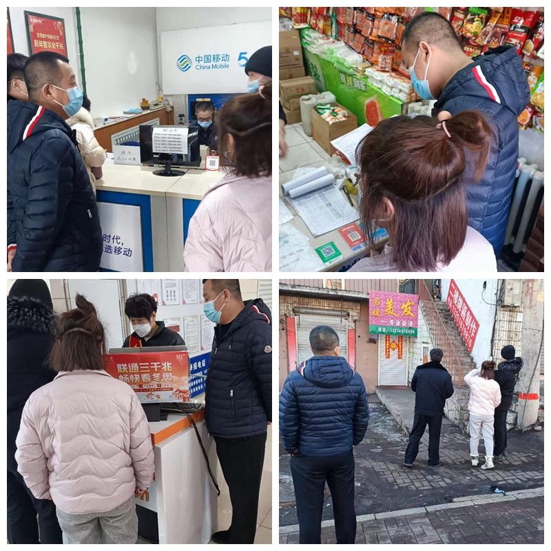 为从根源杜绝流动人口产生的防控隐患,确保商户安全有序经营。城子河法院每日负责排查辖区130余家商户疫情防控情况,进一步督促商户严格按照要求落实落细疫情防控。2月24日,面临着鸡西市疫情防控的严峻形势,党组副书记、常务副院长孙永杰,党组成员、综合办公室主任于洁带领志愿干警下沉社区,入户排查并做登记,现场查看门店的每日消杀记录、从业人员核酸检测记录、疫苗接种情况、商户门口张贴“双码”情况等内容,确保不漏一户不落一人。院领导带头参与疫情防控,充分发挥了党员先锋示范作用,鼓舞了干警士气,彰显了法院的责任担当,为群众应对疫情防控带来了信心与希望。