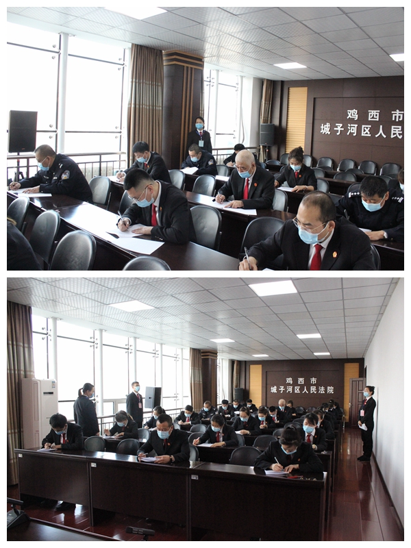为深入推进“能力作风建设年”活动开展,助推“学习型院”创建,进一步提升履职能力,巩固专业知识,在严格遵守疫情防控规定下,3月31日下午,城子河法院组织开展业务理论测试,全体在编干警参加测试。