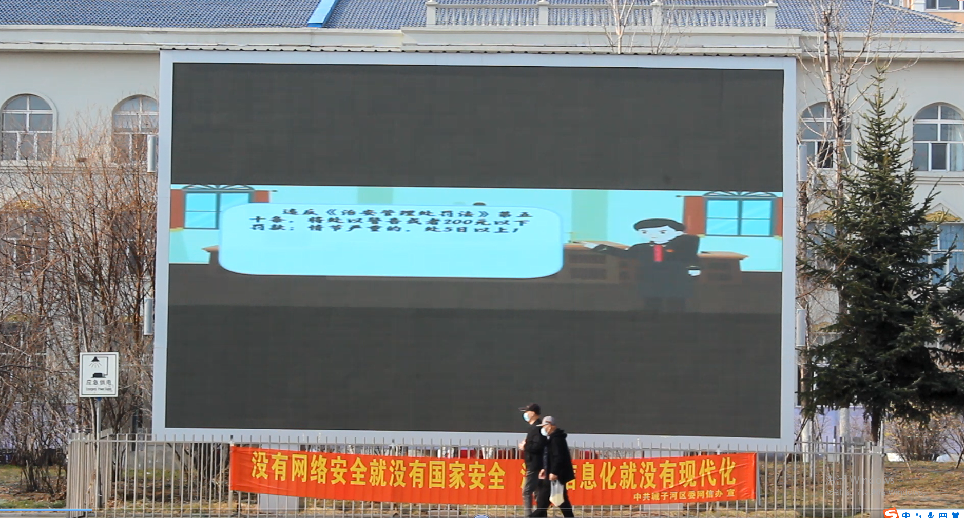 充分发挥电子屏幕覆盖面广、信息传递速度快的优势开展疫情防控普法宣传。投放鸡西中院制作的普法动画,吸引广大市民朋友们驻足观看,扩大普法宣传范围,引导广大群众自觉遵守防控要求,加强自我防护,确保疫情防控法治宣传铺天盖地、家喻户晓、人人皆知。