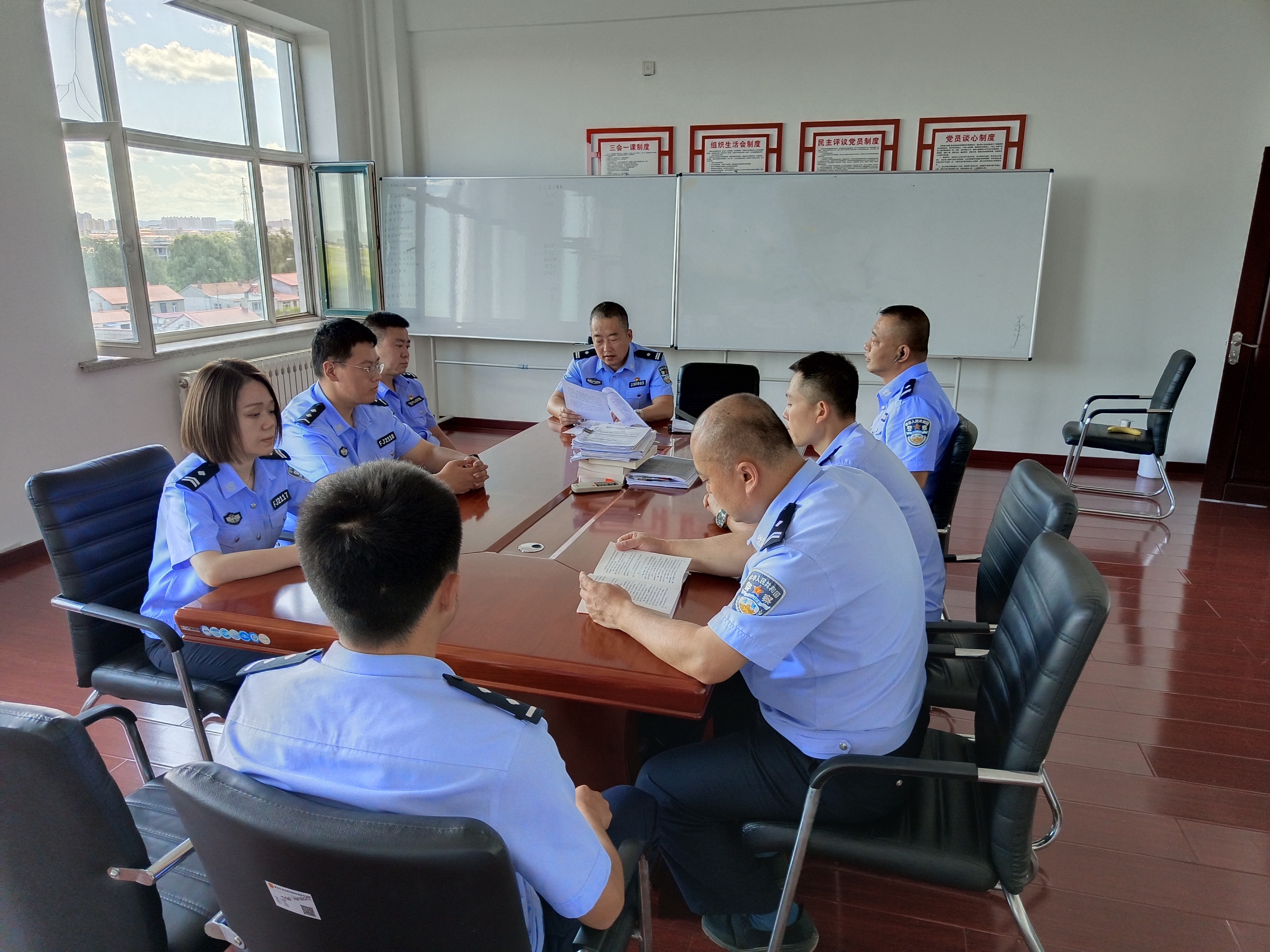 法警大队召开专题学习贯彻会议,会议要求,一是接续高站位以政治建设统领警队建设,把握正确的政治方向,做政治上的明白人。坚决捍卫“两个确立”,做到“两个维护”,坚持党的绝对领导。二是接续高质效司法办案,服务振兴发展,做司法事业的开路人。法警大队坚决落实“疫情要防住、经济要稳住、发展要安全”的要求,守好机关大门,为审判执行工作服好务。三是接续高品质服务群众,深化为民情怀,做人民群众的贴心人。要从从文明用语、微笑服务做起,让人民群众切实感受司法的温度、力度,提升人民群众的司法获得感和满意度。四是接续高标准锻造队伍,重塑法院形象,做践行法治精神的带头人。驰而不息地改进司法作风,持之以恒抓好能力作风建设,确保取得实在效果。