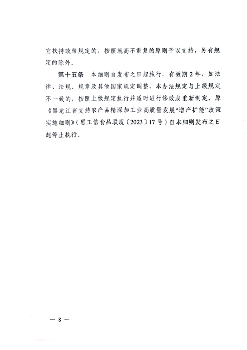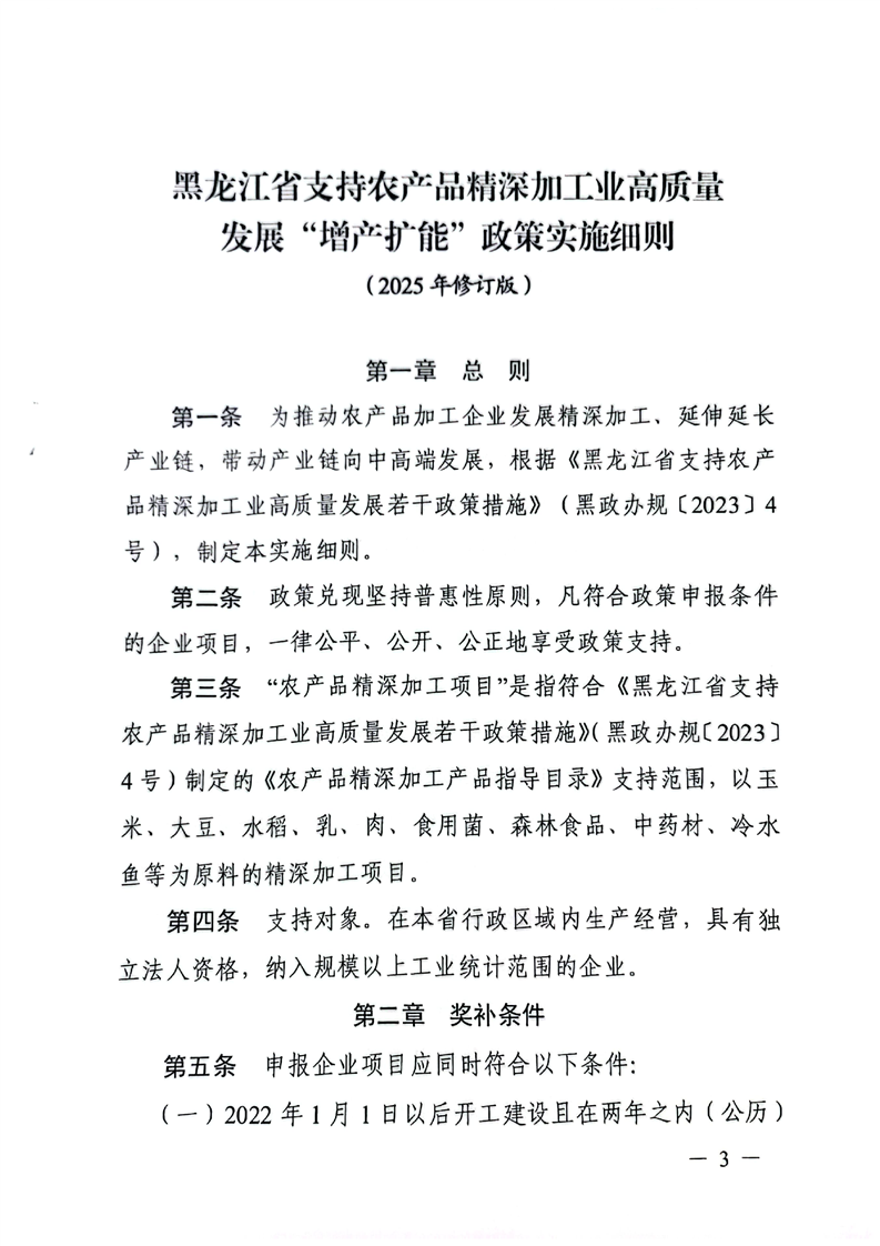 【惠企信息】黑龙江省支持农产品精深加工业高质量发展“增产扩能”政策实施细则(2025年修订版)