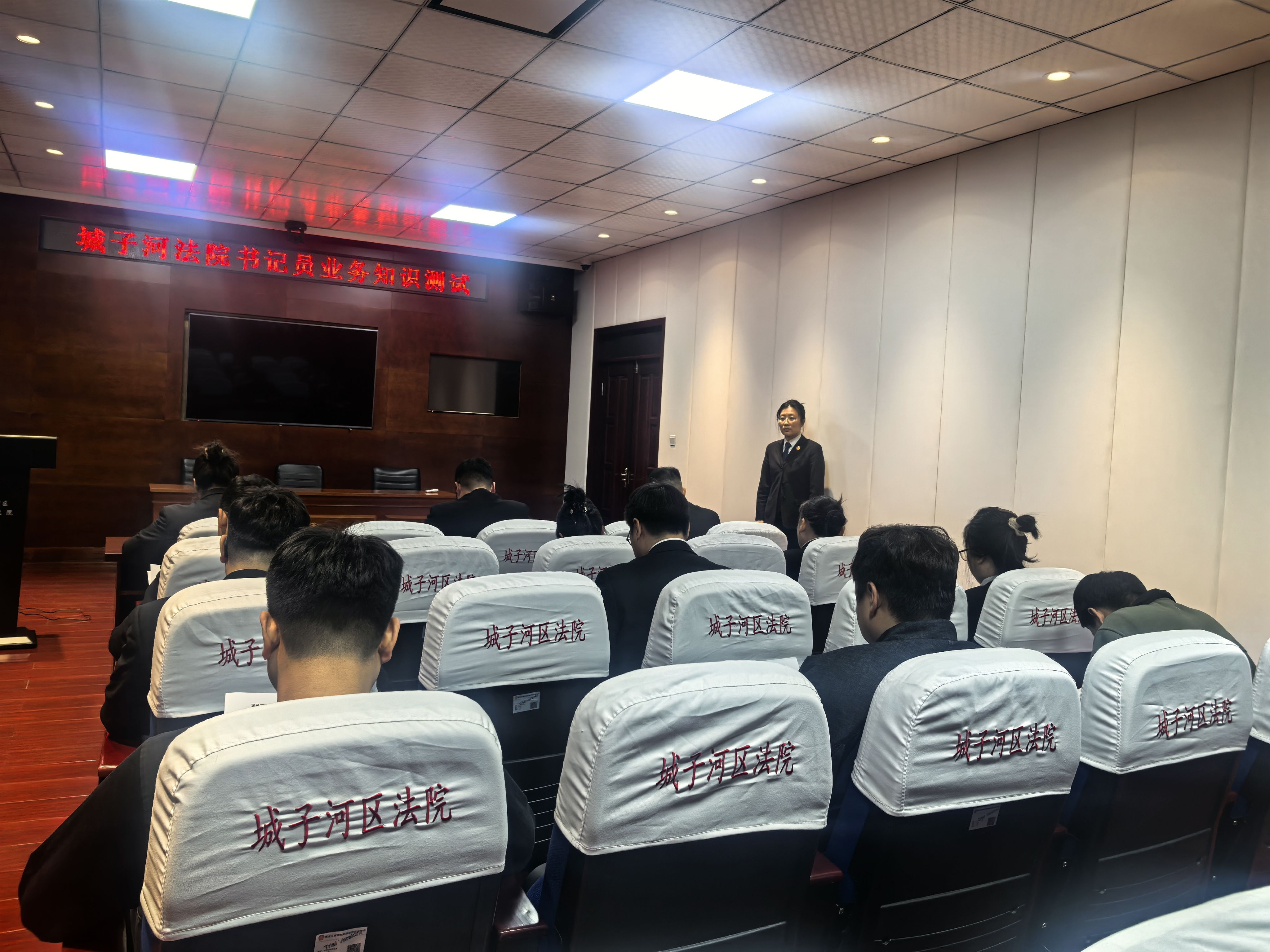 此次测试重点涵盖法律法规、政治理论知识、与书记员工作相关的程序规定及工作行为规范等内容。考试现场氛围严肃、秩序良好,书记员们沉着冷静思考、认真仔细答题,充分展现了扎实的业务技能和积极向上的精神风貌。
