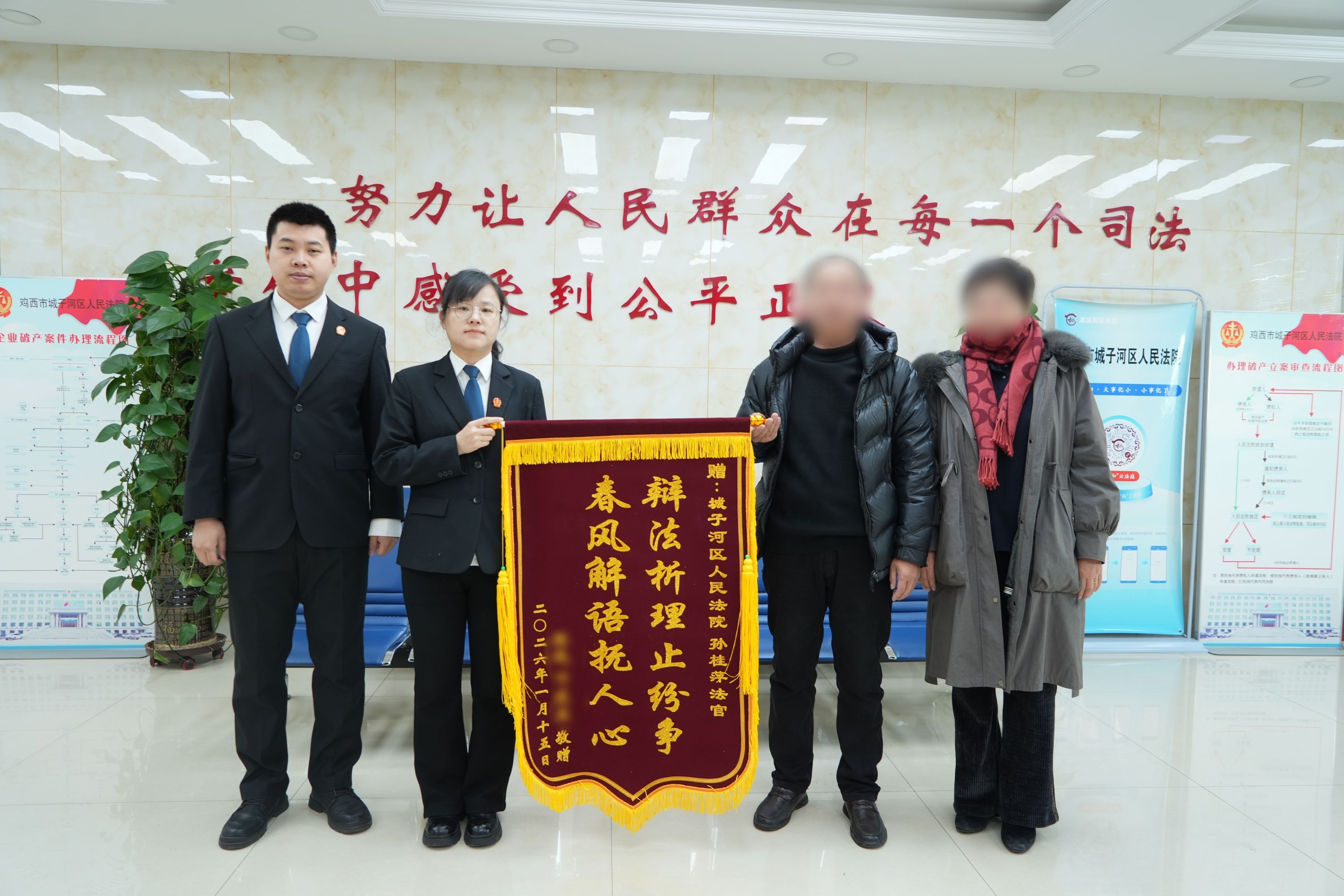 调解过程中,孙法官以“远亲不如近邻”的情理为纽带,以法律规定为底线,反复居中协调,一方面向原告林某耐心释明行政诉讼的举证规则与派出所不予行政处罚的法律依据,缓解对立情绪;另一方面与第三人齐某深入沟通,从侵权责任要件、民事赔偿法律义务等角度释法说理,引导其正视林某实际损失。最终,在孙法官倾心调解下,齐某自愿承担相应民事赔偿责任,并当场足额支付给林某。拿到赔偿款的林某,心结得以解开,主动向法院申请撤回行政诉讼。一场原本可能持续发酵的民行交织纠纷,得以圆满化解。不久后,林某专程来到法院,将一面印着“辩法析理止纷争 春风解语抚人心”的锦旗送到孙法官手中,这份致谢,既是对法官倾心调解的认可,也是法理情交融化解矛盾的暖心写照。