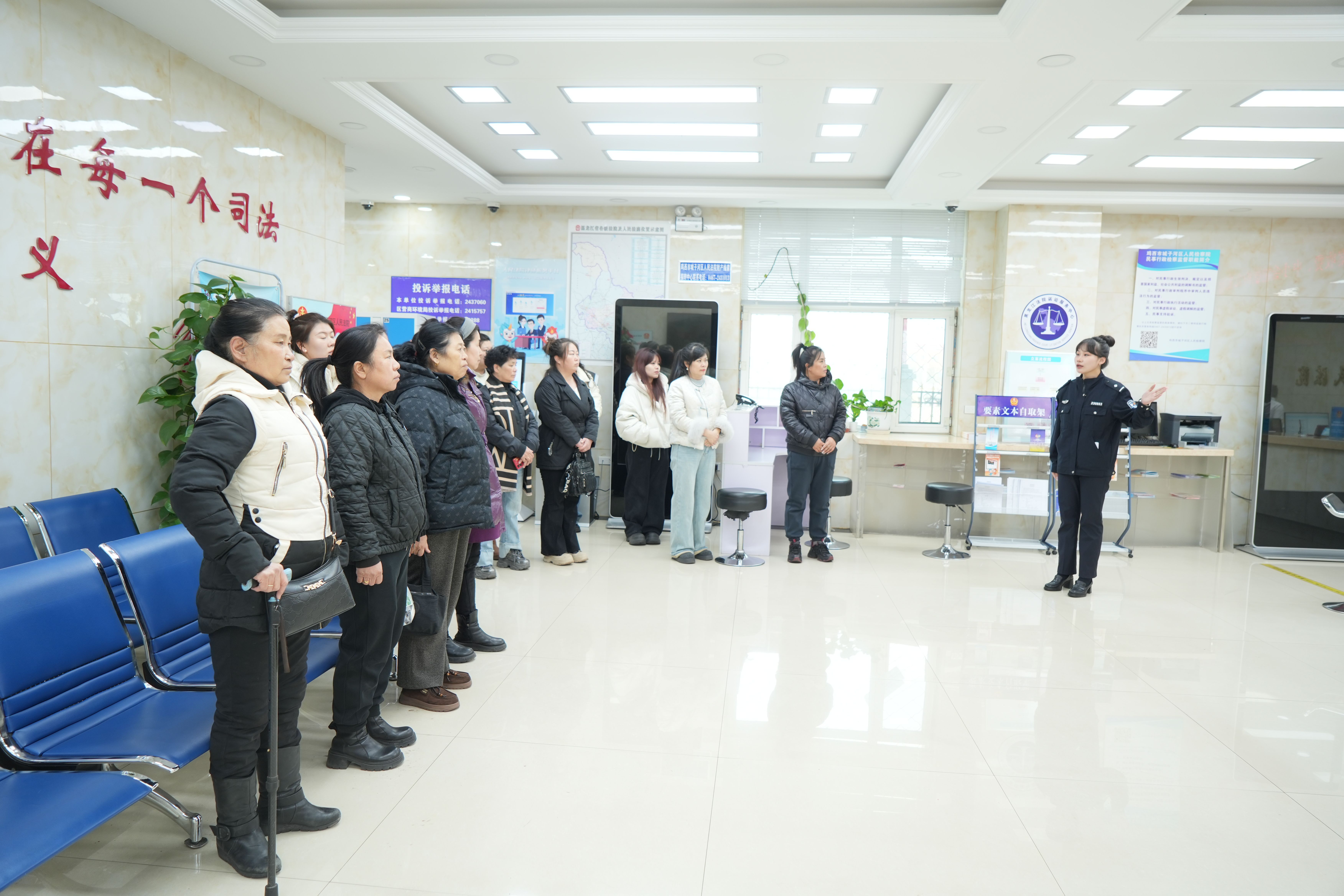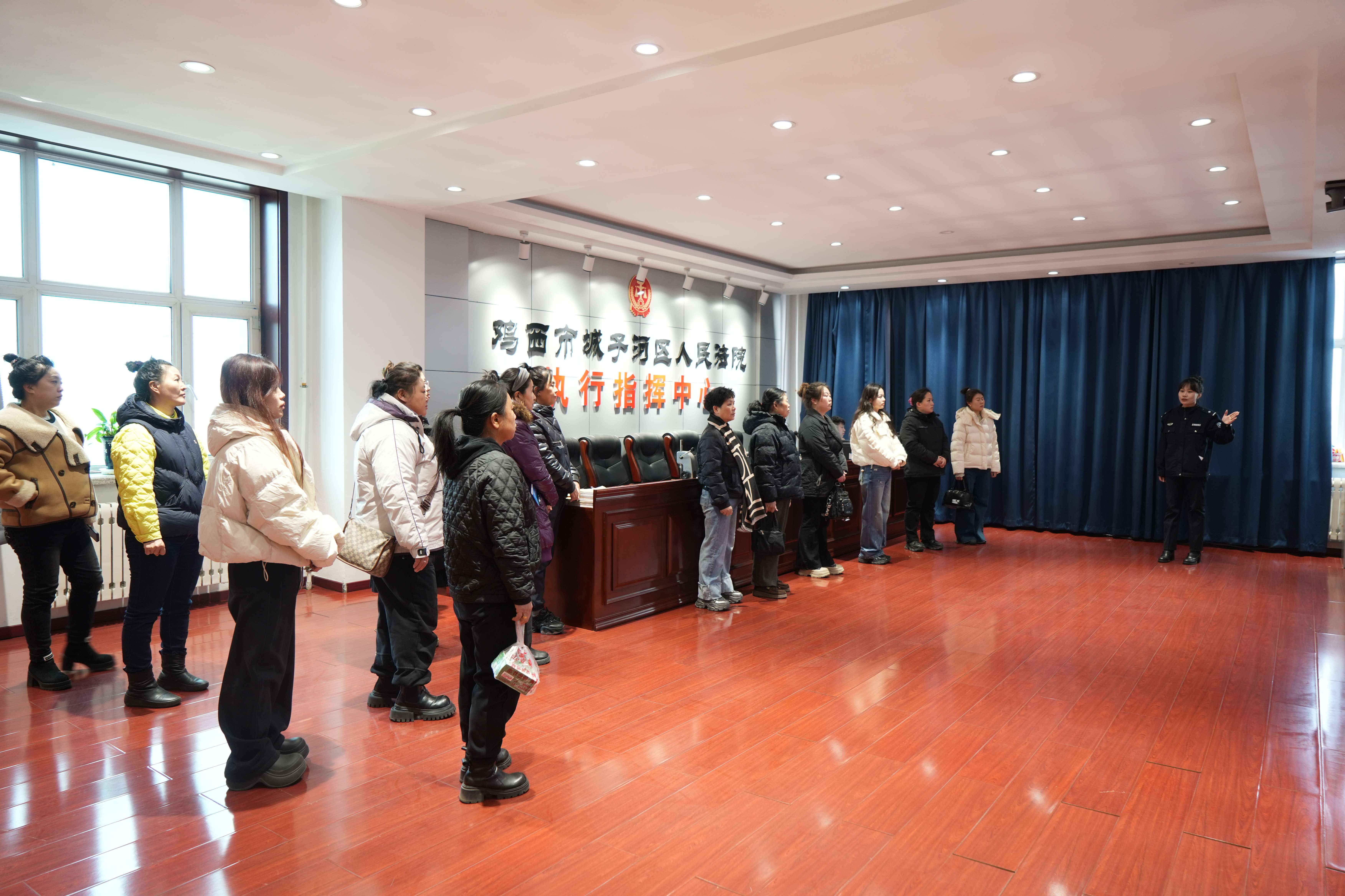 在讲解员的带领下,妇女代表们依次参观了安检大厅、诉讼服务中心、家事调解室、审判法庭、执行指挥中心等场所,详细了解法院“一站式”诉讼服务举措、家事纠纷多元化解机制,以及“法院+妇联”联动协作保障妇女儿童权益的工作成效。原本略显神秘的司法场所变得触手可及,大家真切感受到司法工作的公开透明与人文关怀,纷纷表示,此次参观让自己对法院工作有了更直观的认识,也深刻体会到法律在维护自身权益中的重要作用。